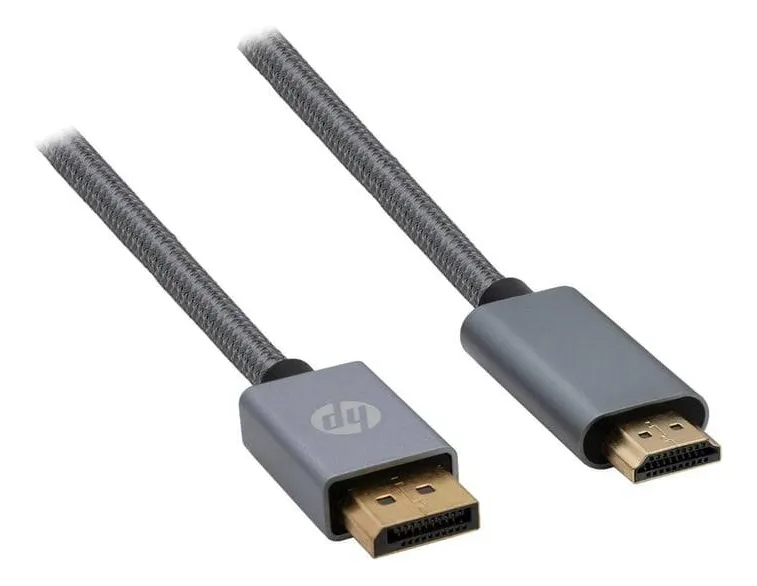 El Cable DisplayPort a HDMI HP es un accesorio diseñado para conectar computadoras, laptops y tarjetas gráficas con salida DisplayPort a monitores, televisores o proyectores con entrada HDMI, ofreciendo alta calidad de imagen y resolución Ultra HD.