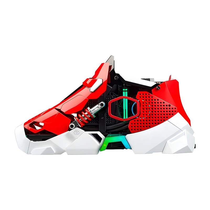 Imagínese tener no sólo una PC, sino también una impresionante obra de arte que rinde homenaje a la icónica cultura de las zapatillas. Basado en el diseño JMDF ganador del premio CaseMod2020, no solo está agregando a su colección, sino que la está elevando a nuevas alturas. Cada curva, cada línea y cada detalle es un testimonio de la dedicación y pasión vertidas en este diseño. No es sólo una PC, es una pieza destacada que se integra perfectamente en su mundo, reflejando su estilo único y su aprecio tanto por la estética como por el rendimiento.