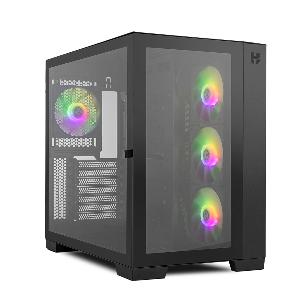 Nox Hummer Astra es una semitorre deluxe con un impactante diseño minimal que ofrece unas vistas panorámicas a su interior. Con doble cristal templado, este chasis es una mezcla de diseño moderno y arte. Esta caja de acero es compatible con gráficas de gran tamaño, de hasta 420 mm, y sistemas de refrigeración líquida de hasta 360 mm. Además, incorpora cuatro ventiladores ARGB Easy Link Lite, pudiendo montar hasta un total de diez ventiladores. En esta semitorre de Nox, todo ha sido pensado para pasar al siguiente nivel de las cajas para PC.