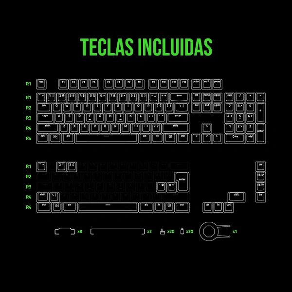 • Compatible con teclados Razer: 60%, 65%, Tenkeyless y Full Size