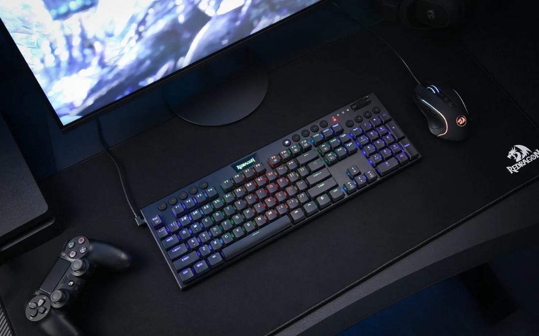 Teclado mecánico Redragon K619 Horus RGB, teclado para juegos con cable de diseño ultrafino con teclas de perfil bajo, control multimedia dedicado e interruptor rojo lineal, compatible con software Pro