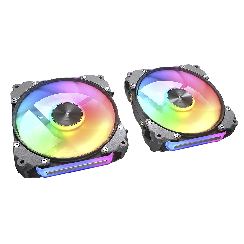 Un ventilador totalmente circunscrito maximiza la superficie de las aspas del ventilador, ofreciendo el máximo rendimiento sin comprometer el estilo. El ventilador Apolar 120 ARGB eleva el juego de construcción de su PC con una eficiente conexión en cadena de liberación rápida, mientras que el sistema de amortiguación Q-Stop “Quiet Stop” elimina zumbidos y ruidos.