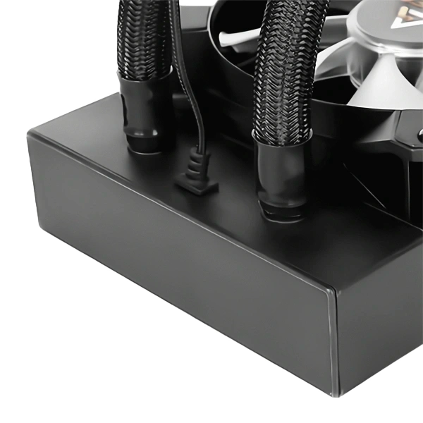 La bomba de agua está ubicada en la parte superior de el radiador, disminuye altamente el daño a la CPU causada por la vibración.